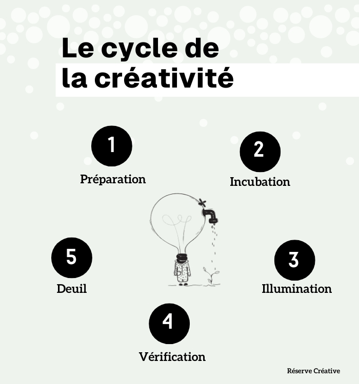 L’un des modèles les plus répandus est celui du Britannique Graham Wallas, qui comprend 4 grandes phases :