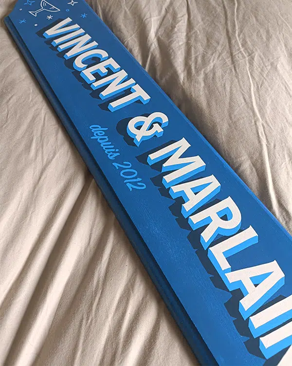 Donc, ce que je fais dans la vie. Je dis que je suis graphiste des lettres de A à Z. C’est en gros la façon la plus simple de l’illustrer, donc je dessine, j’écris et je peins des lettres sur tout support.
